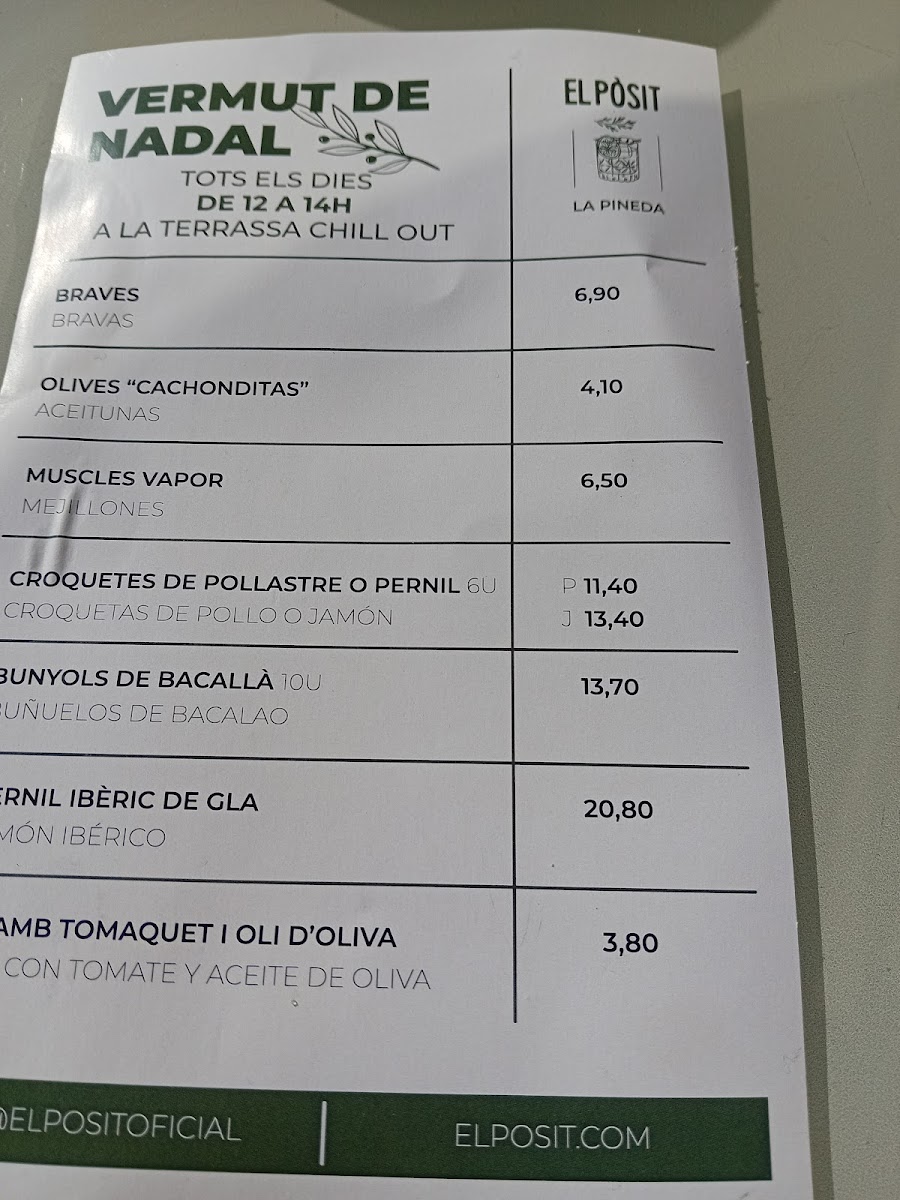 El Posit de La Pineda Menu